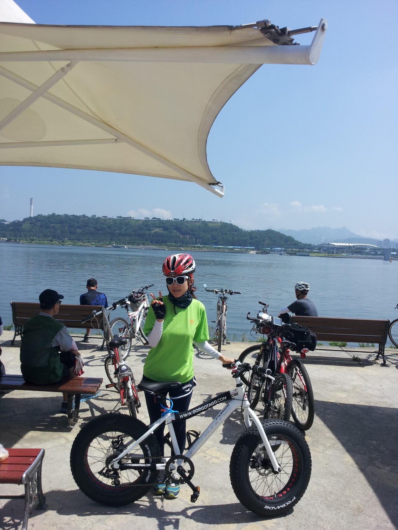 여자가 타기에 좀 무겁지 않을까 했는데, 무게도 일반 자전거와 비슷하구요,