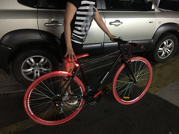자전거 탓는데 쌩쌩 잘나가고 디자인도 이쁘네요~