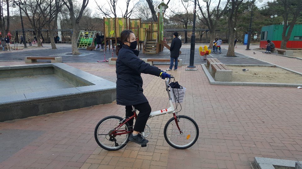 조립 신청해서 바로 탔네요~ 접이식이라 차트렁크에 싣고 갖고 다니기 편해요 공원이나 자전거도로에서 산책겸 타고 다니기편하네요 사은품은 젤안장커버 신청합니다