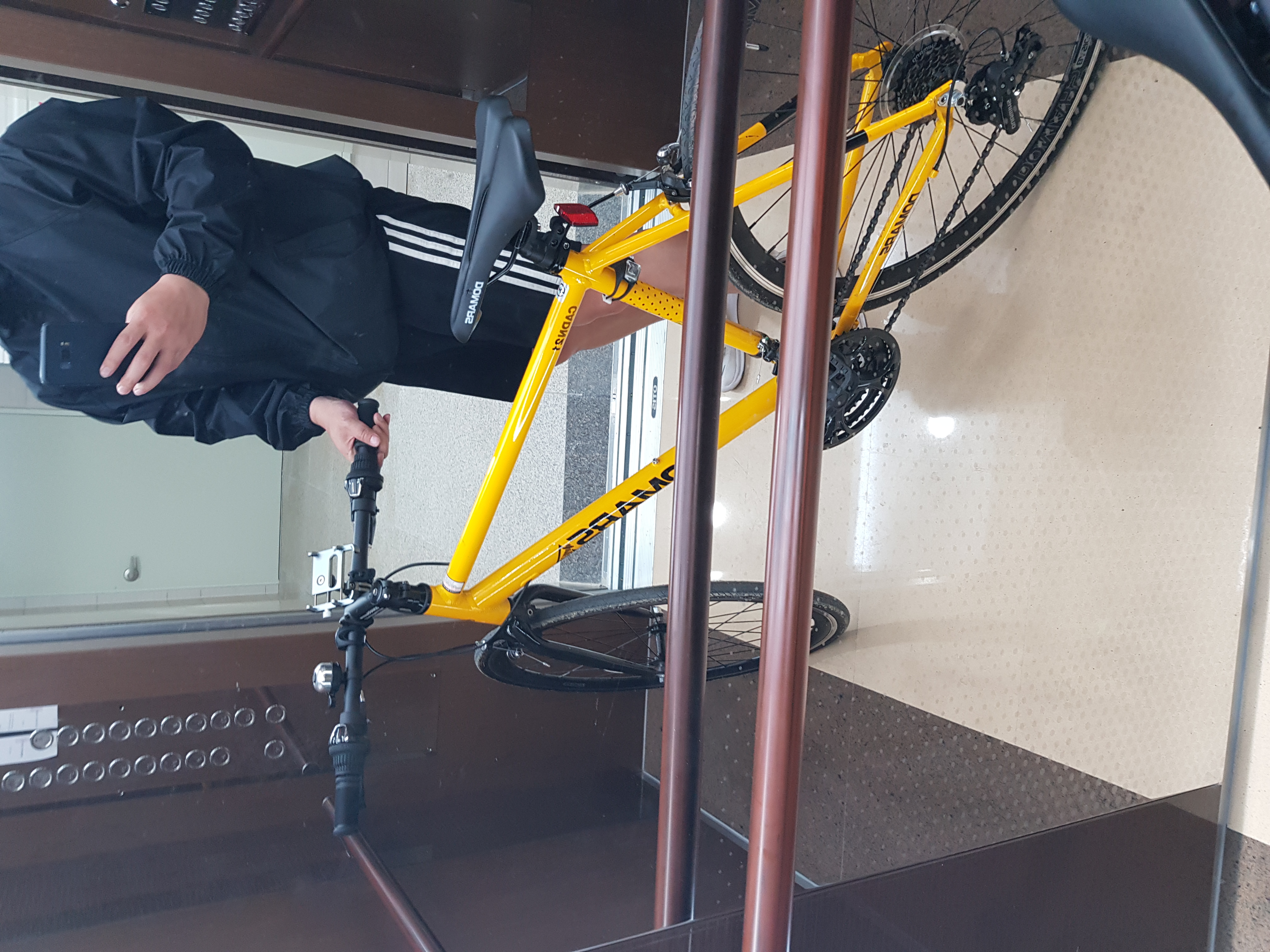 혼자타다보니 사진은 엘레베이터랑 집앞에서 찍었어요 자전거너무이뿌고잘나가네요^^ 엉덩이가 아파서 젤 안장 받고싶어요