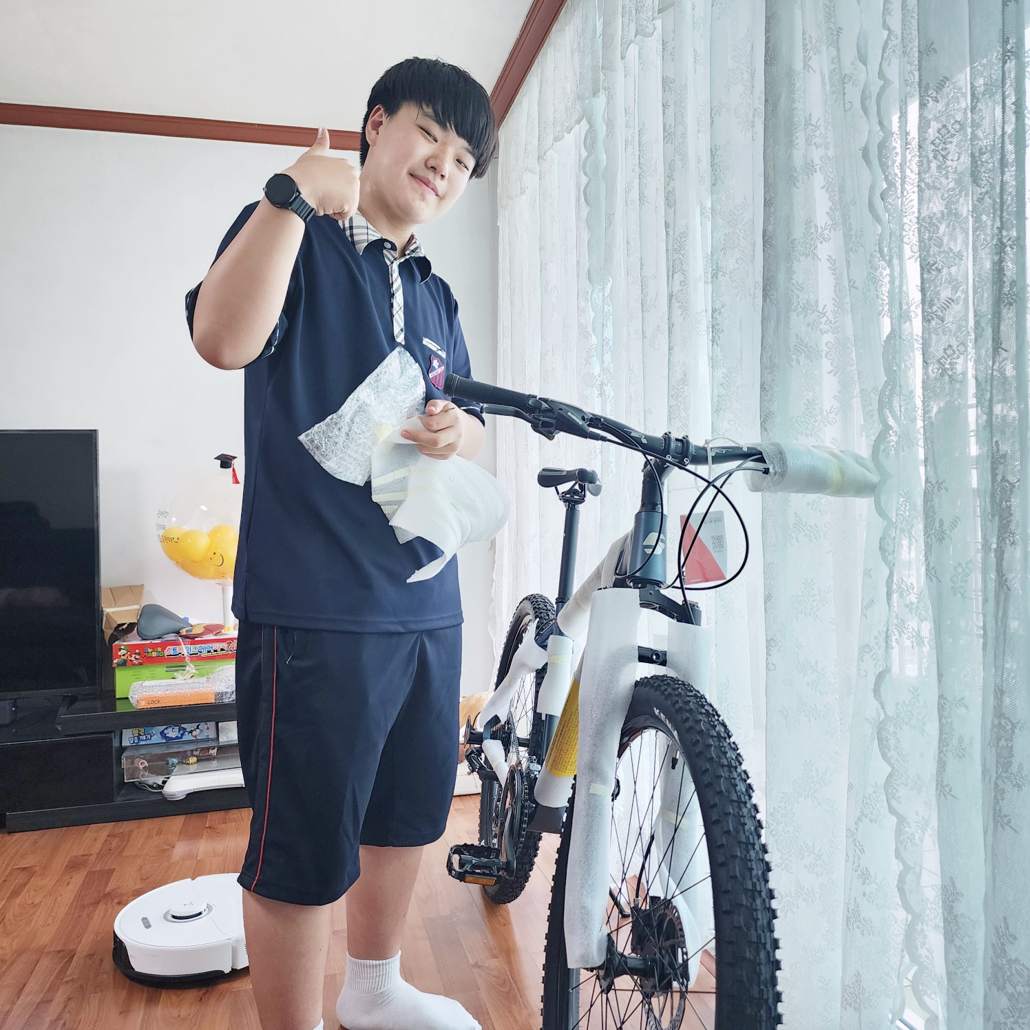 아들놈이 직접 고른 모델이라 시원하게 주문했습니다 배송빠르고 물건 좋구요 ^^ 받아서 핸들각도 조금 조정하고 안장 위치 조절하고 잘타고있습니다 음료거치대 볼트 하나 불량말고는 만족합니다 :) 불량 문제 말씀드리니 처리 빠르구요 젤리안장 사은품 주시면서 볼트도 함께 보내주세요 :) 이 더운날씨에 신나서 맨날 탑니다 ㅋㅋㅋㅋ 다들 더위 조심하시고 즐겁고 안전한 라이딩되세요 :)