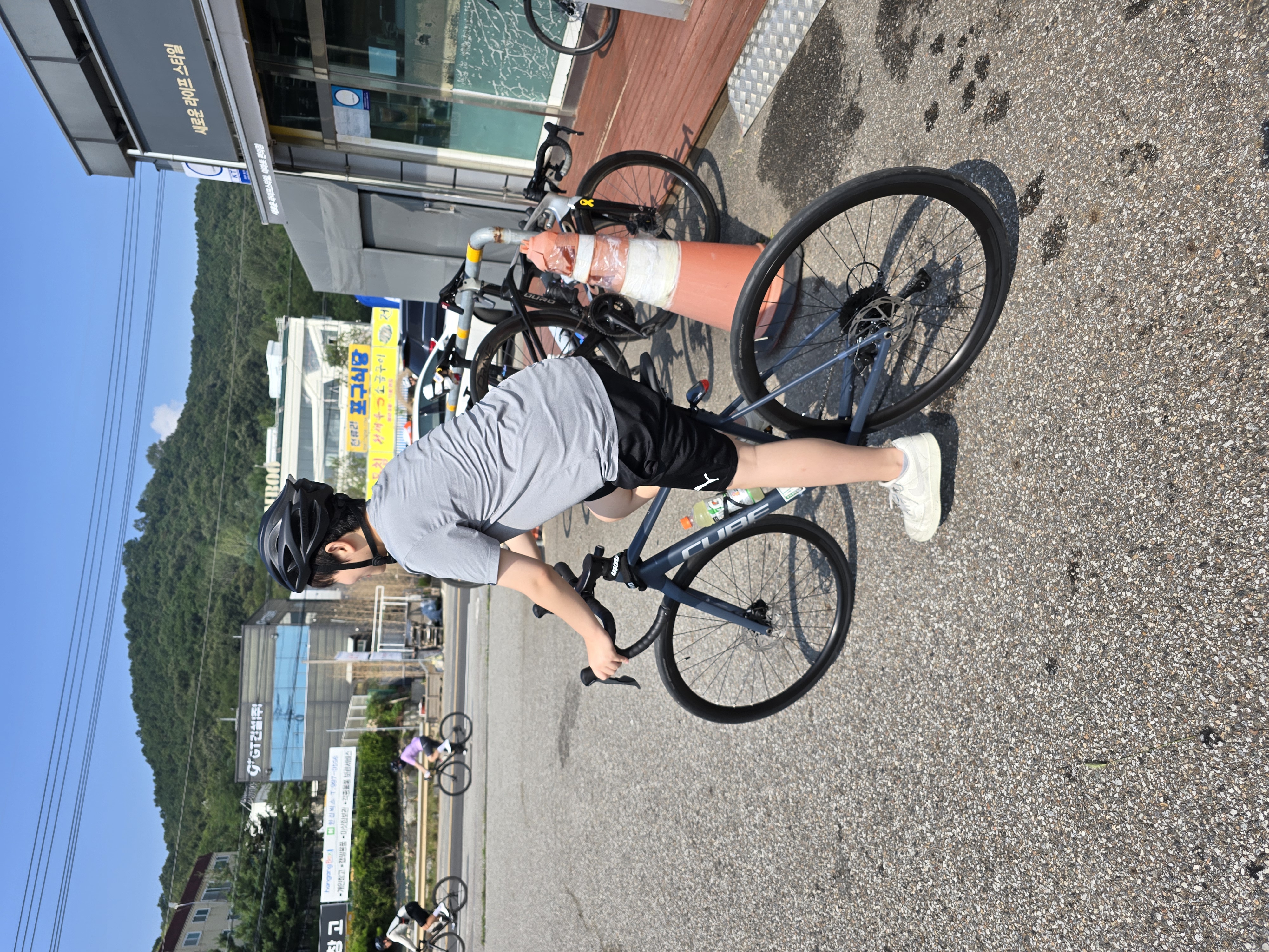 고르고 타고 덕분에 원하는 날짜에 딱 맞게 제일 저렴한 가격에 푸짐한 선물과 함께 자전거가 왔어요~ 큐브 로드바이크 가성비 엄청 좋아요 라인이 밖으로 보이지도 않아서 깔끔하니 좋고 속도도 아주 슝슝~ 아들냄 따라갈 수가 없네요