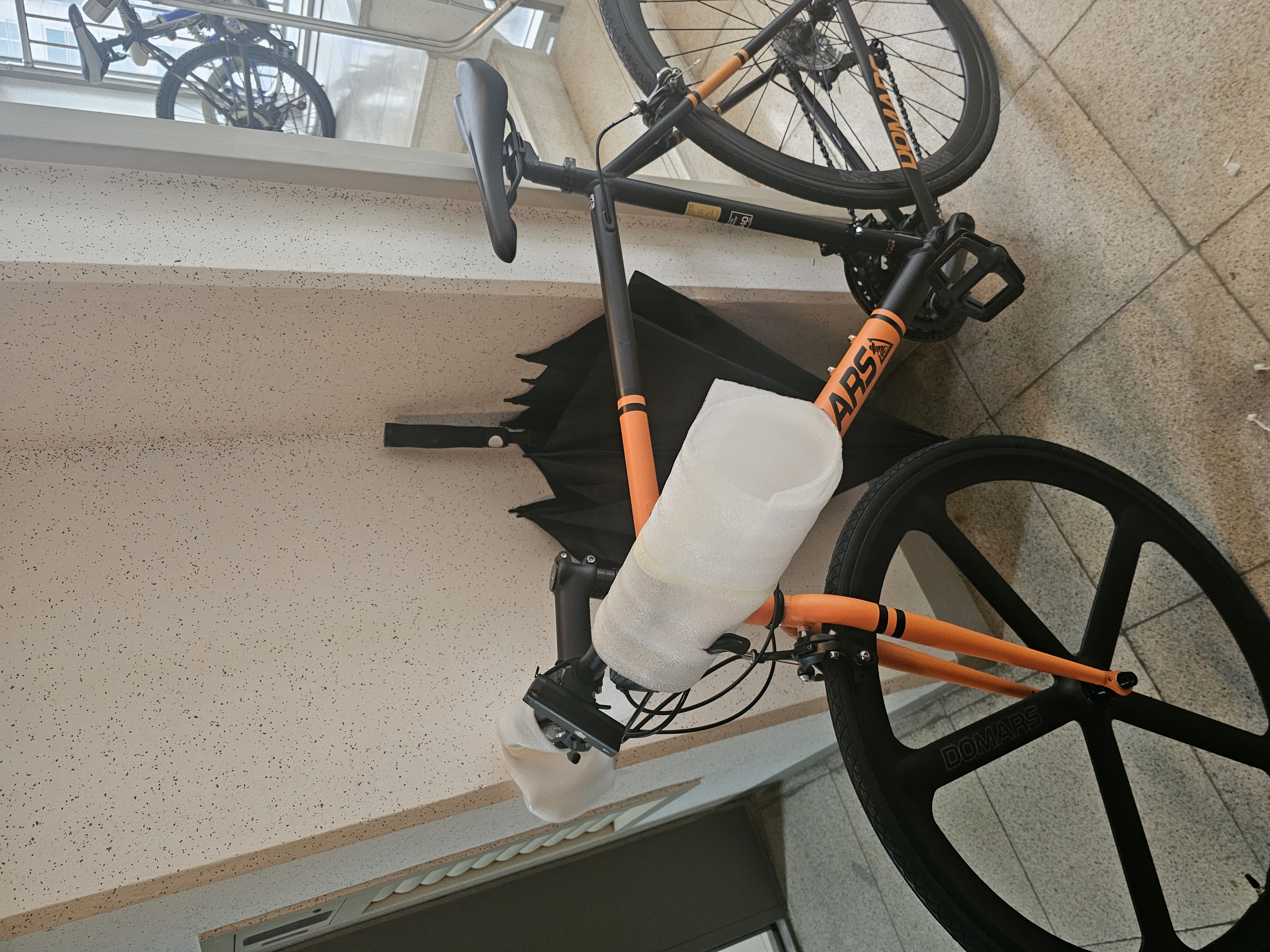 어릴때 잠깐 타다가 요즘 갑자기 라이딩이 하고싶어져서 갑자기 구매하게 되었습니다 그렇게 주문을 마치고 기다리던중 어느순간 배송 완료라고 뜨고 금방 배송이 왔더라구요 처음 시켜보는 오렌지 블랙 조합인데 실물로 보니 엄청 이쁘더라구요 열심히 타겠습니다 ~ 후기 이벤트는 젤 안장커버 부탁드립니다