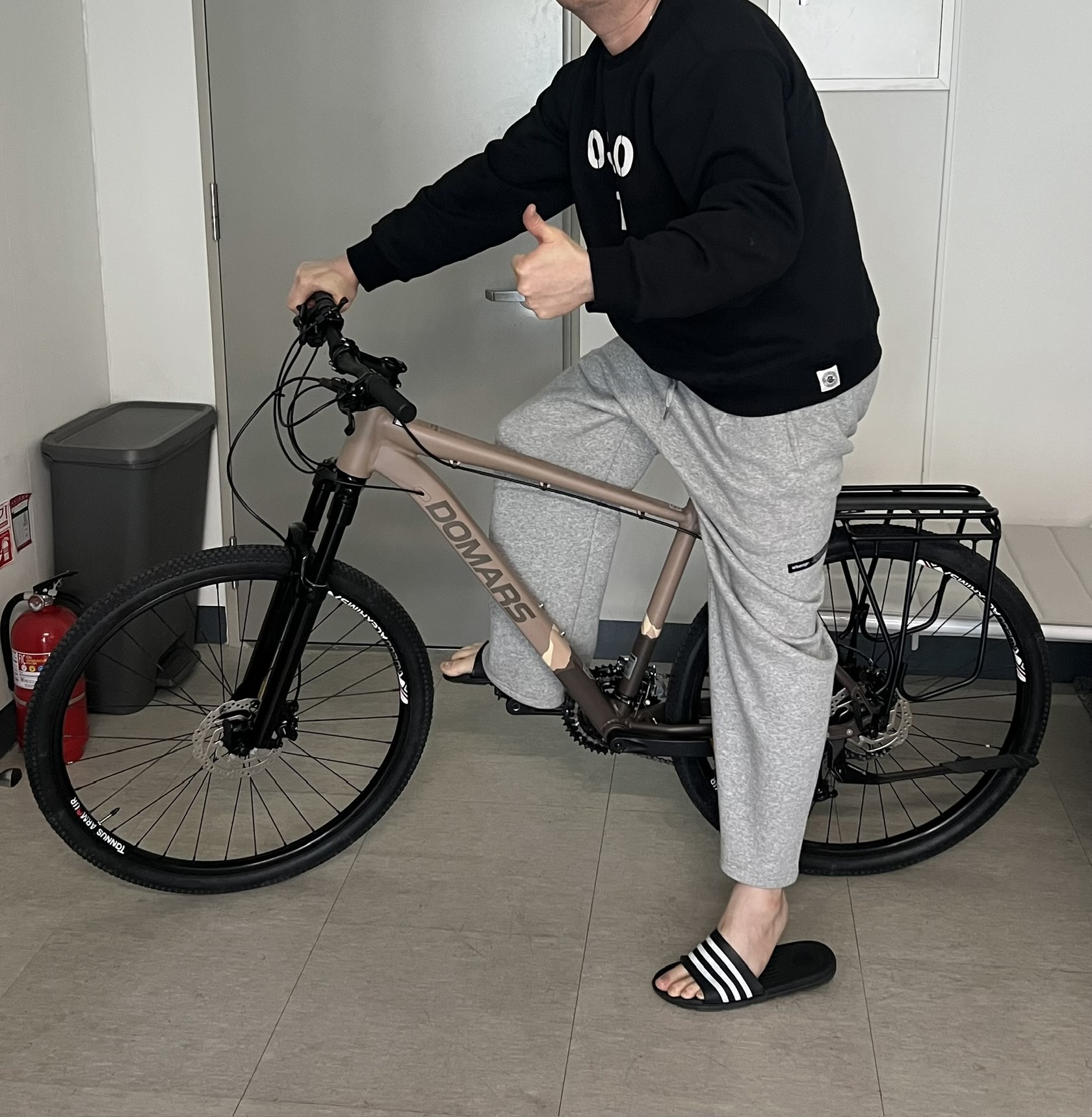 회사 근처로 이사를 하게되면 자전거로 출퇴근을 하려고 거의 40년만에 다시 구입을 결심하게 되었네요. 인터넷을 찾고 헤메고 손품을 팔아 삼만리를 하던 끝에 고르고타고로 결정하게 되었습니다. 참고로 저는 제미나이 AI를 통해서 유명 타 브랜드 유사스펙의 제품들을 비교하여 요약해 받아보았는데 제미나이도 제가 구입한 모델을 저에게 안성맞춤으로 강력히 추천하더라구요. 1. 주 사용 용도 2. 일 평균 주행거리 3. 도로의 상태(인도 주행여부) 4. 희망하는 가격대 등등 몇 가지 입력값을 넣고 타 제품들과 비교분석을 의뢰했더니 고르고타고의 본 제품을 최고의 추천품으로 제안줬습니다. ^^ 원래는 이번달 말경에... 이사를 하고나면 이후에 배송받기로 예약배송을 요청드렸었는데, 아마......... 추가로 다음날 주문했던 킥스탠드와 주문번호가 통합되는 과정에서 바로 '익일 배송'처리 된 것 같아요. ㅋㅋ 어제 배송메시지 갑자기 받았을때는 잠시 당황했지만, 사실 미리 주문넣고 나니까 은근히 "그냥 바로 받을껄 그랬나?......." 싶었거든요. 기다려지더라구요. 이런 제 마음을 아셨는지 킥스탠드 주문 다음날 야간에 배송 받았습니다. ㅎㅎ ※ 참고로 고르고타고에서는 배송이 심야에 이루어지는 것을 상품페이지에 공지해 주시면 더더 좋을거 같기는 해요. 저는 배송지를 사무실로 했기 때문에 기사님과 통화해서 '안전한 조치'를 감사히도 취해 주셨습니다. 설레는 마음에 아침 일찍이 출근해서 제품 배송상태를 보고 일단 한번 감동하고, 하나 하나 꼼꼼하게 포장된 것을 벗기면서 우~~~~~~~~~~~~~와 하고 감탄 + 감탄의 연속이었습니다. 2023 도마스 아드레날린 2.7 - 멧데저트 컬러감이 완전히! 고급스럽습니다. 너무너무 예뻐요. 그리고 시험주행을 하는데 쇼바의 부드러운 완충작용에 또 한번 놀랐습니다. 브레이크는 유압식을 처음 사용해서 그런지 처음에는 너무 가볍게 쥐어져서 어색했는데 기가막히게 잡힙니다. ㅋㅋ 사무실 동료들도 정말 좋은 제품 같다면서 칭찬을 아끼지 않아주었습니다. 1. 배송기사님의 친절하시고 저를 배려해 주시는 감동스러운 마음씨 2. 꼼꼼한 포장상태와 완전무결한 상태의 완성도 높은 제품 3. 압도적인 외관의 디자인과 포스 4. 꼼꼼히 포장된 선택 사은품 들 5. 이 가격에 이 기능이 믿겨지지 않는 놀라운 성능: 쇼바, 유압식 브레이크, 기어변속 등등 6. 저는 179cm 이고 다리가 약간 긴 편인데, 18인치 안장을 가장 낮게 조절해도 충분할 정도네요. 18인치라고 해서 무지막지 클줄 알았는데 아니고 딱! 좋습니다. 7. 자전거 짐받이와 타누스 아머(펑크방지 옵션): 강추 합니다. 이번에 고르고타고와 인연을 맺고, 자전거에 좀 더 관심이 많이 생겼고 이 제품 열심히 타고, 업그레이드 하게 되면 다시 또 고르고타고를 통해서 구입하기로 결심했습니다. 아주 만족스럽습니다, 감사드려요. ※ 포토리뷰 사은품: 젤안장커버 부탁 드립니다. 고르고타고 번창하세요~~~~~~~~
