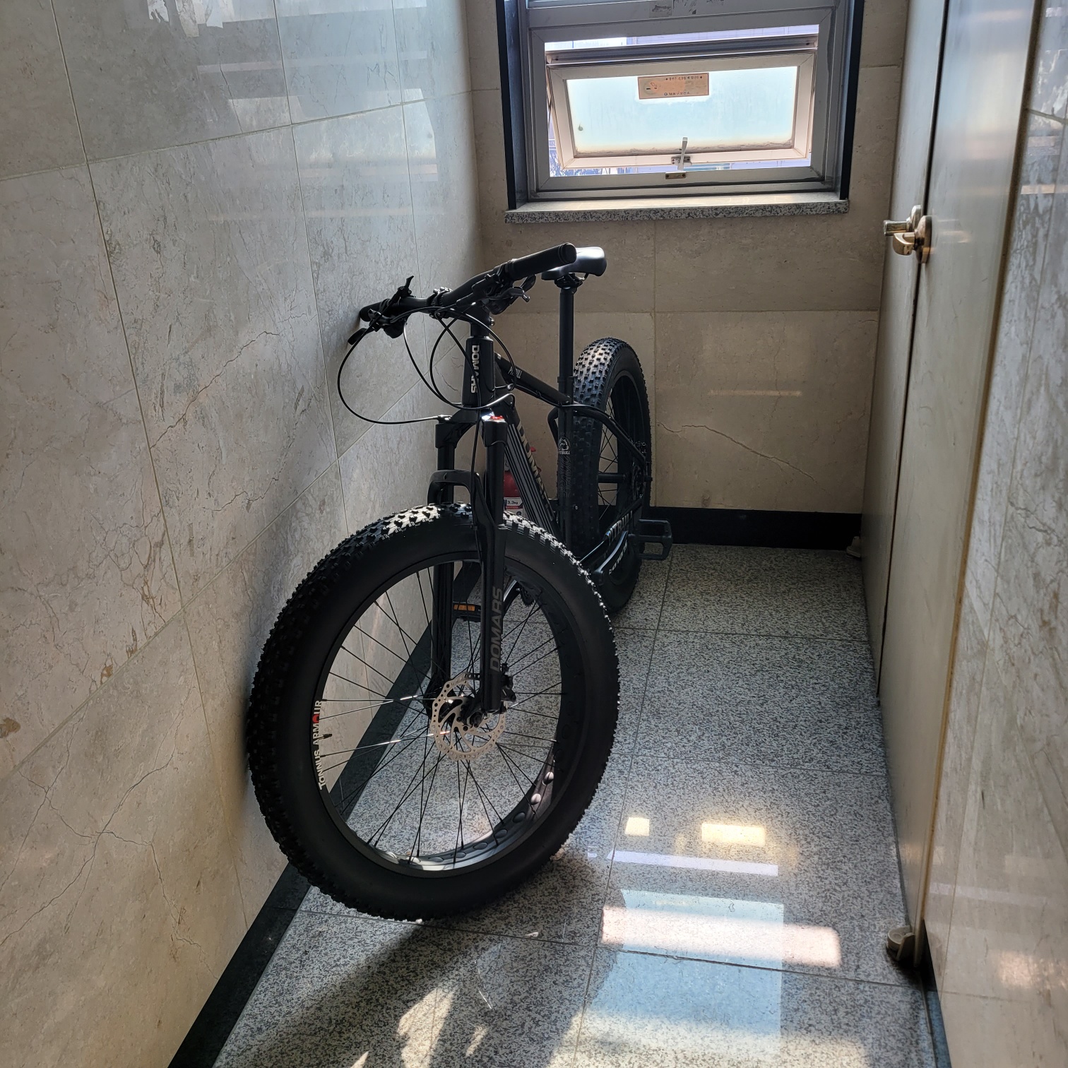 말씀처럼 타이어 사이즈가 커서 엘리베이터 이용이 조금 불편하실 수 있는 점은 팻바이크 특성상 공감되는 부분입니다.