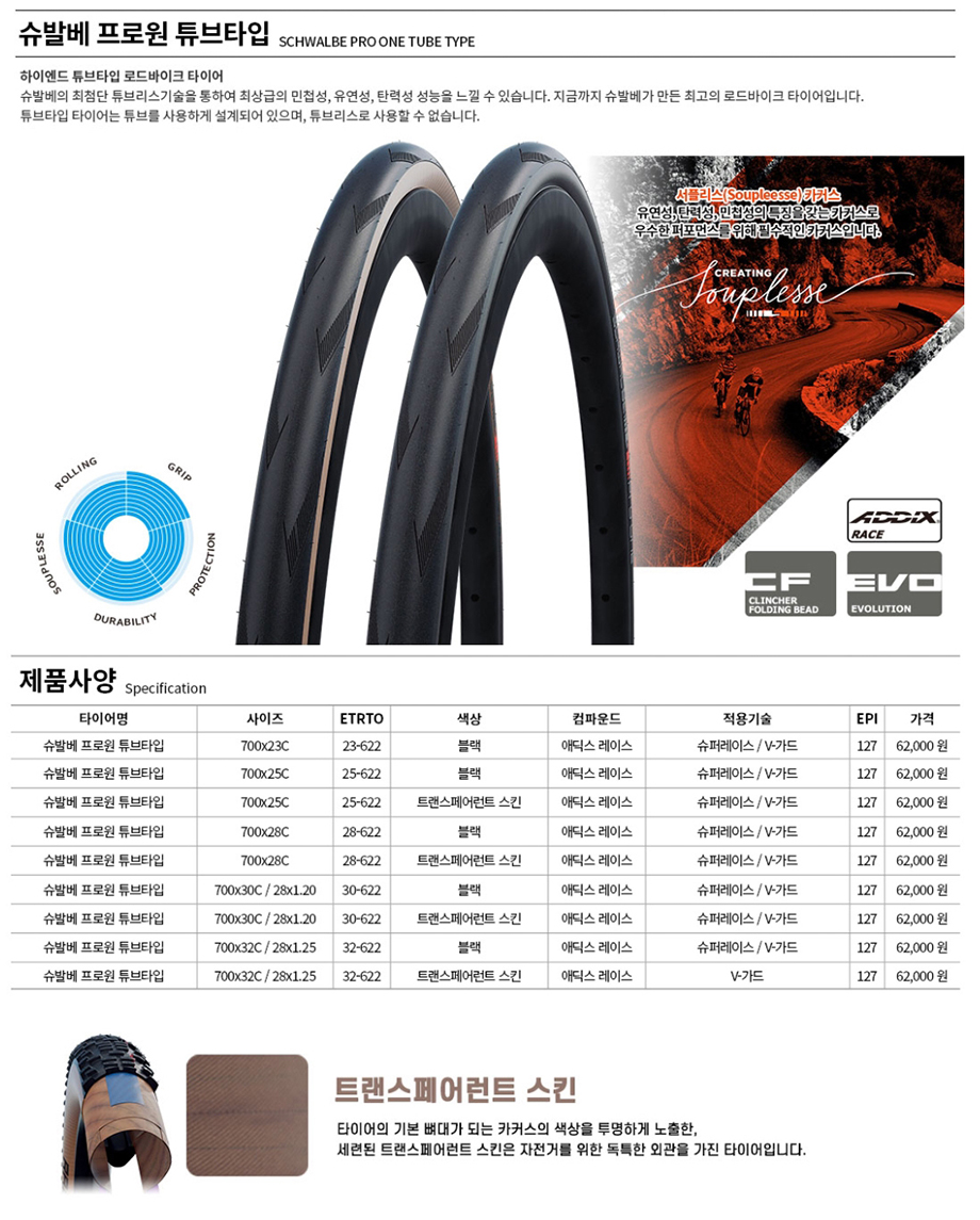 슈발베 프로원 700C x 23 - 25 클린처 로드 타이어