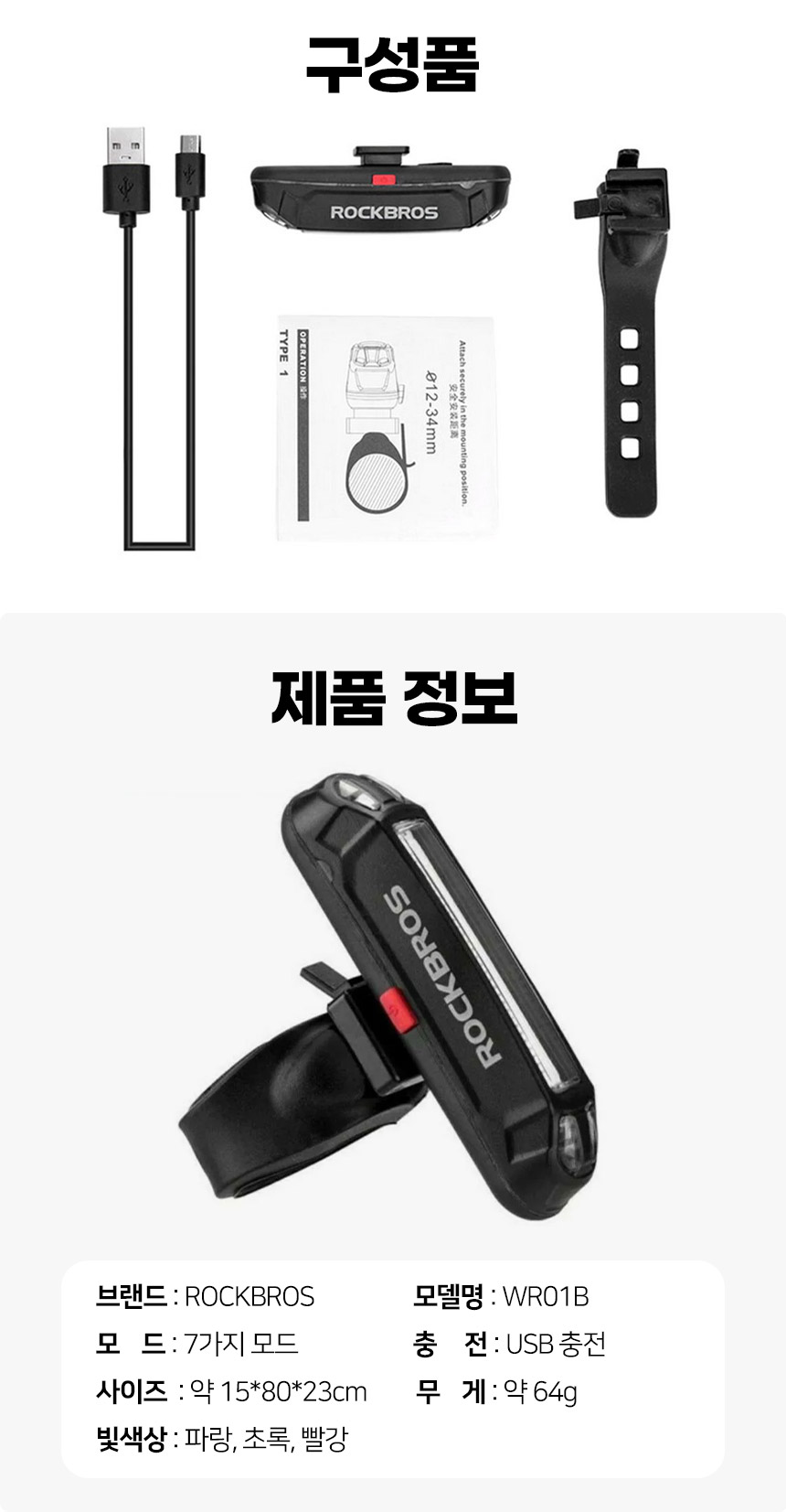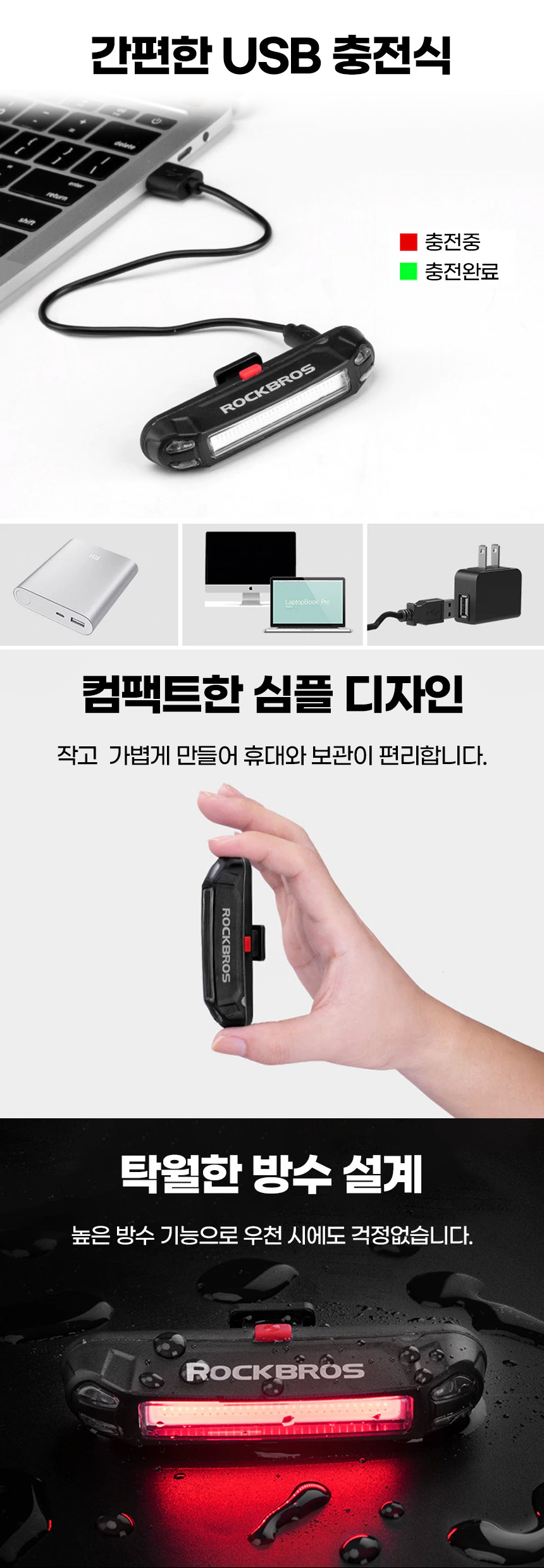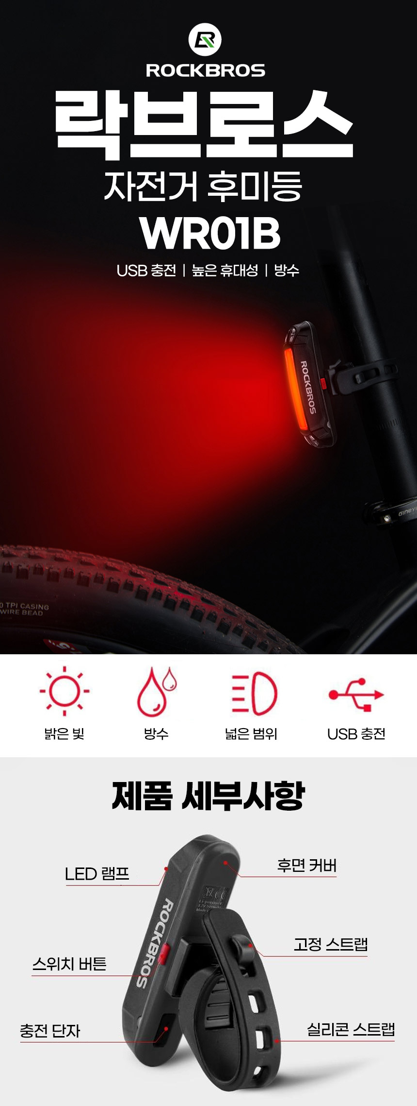 락브로스 WR01B USB충전식 LED 자전거 후미등