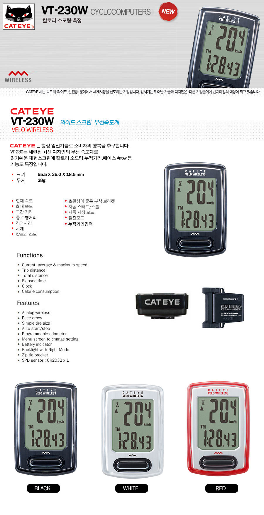 캣아이 VT-230W 무선속도계 와이드스크린