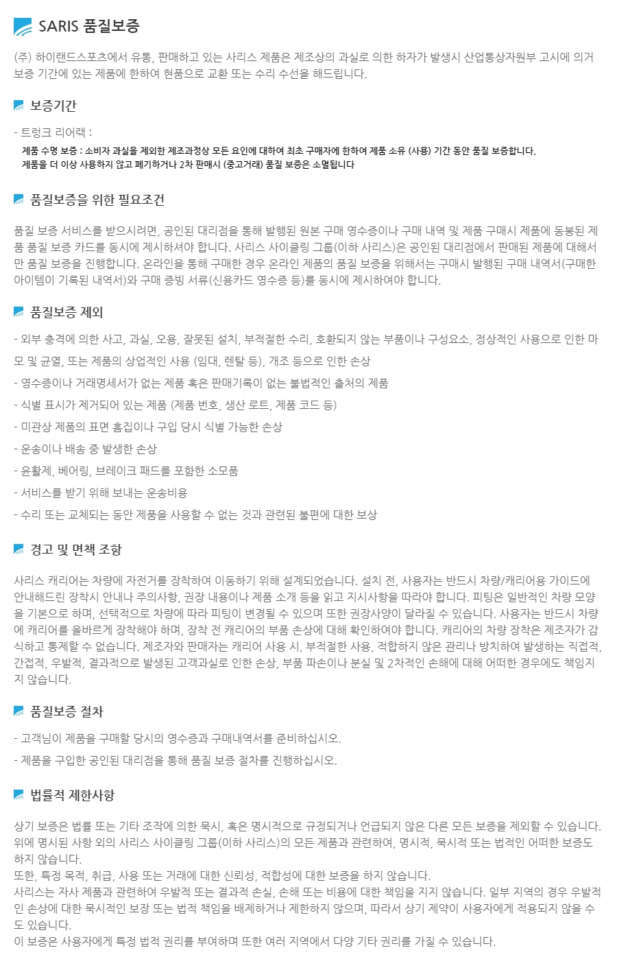 A.무상수리 : 구매일로부터 차체 1년, 부품 6개월(소모성 부품제외)