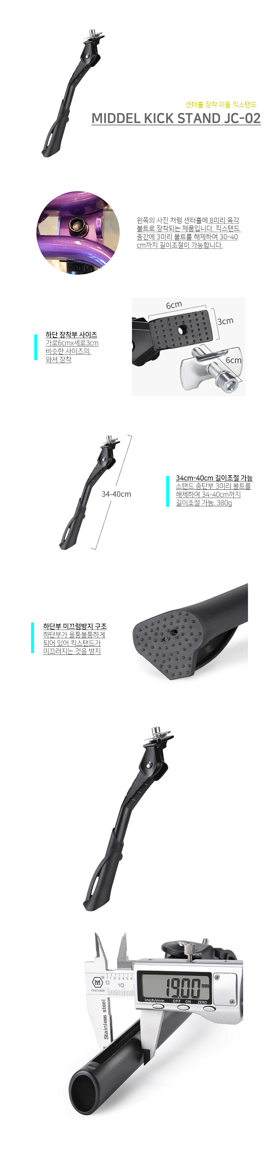 미들 센터홀 장착 자전거 킥스탠드 JC-02 24~29인치