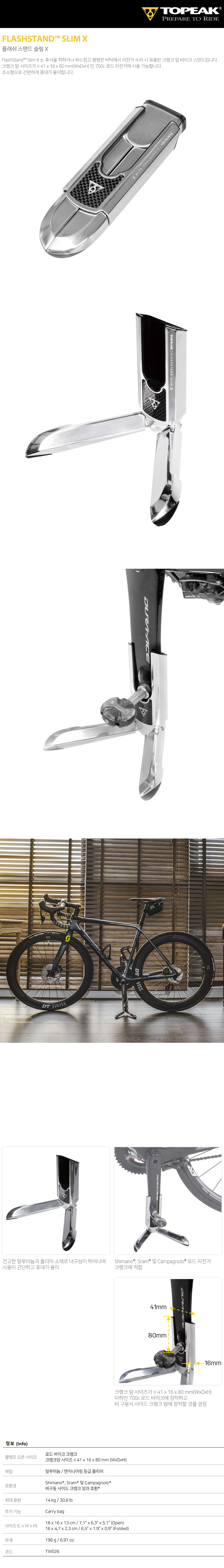 토픽 플래쉬 스탠드 슬림 X 크랭크암 자전거 스탠드