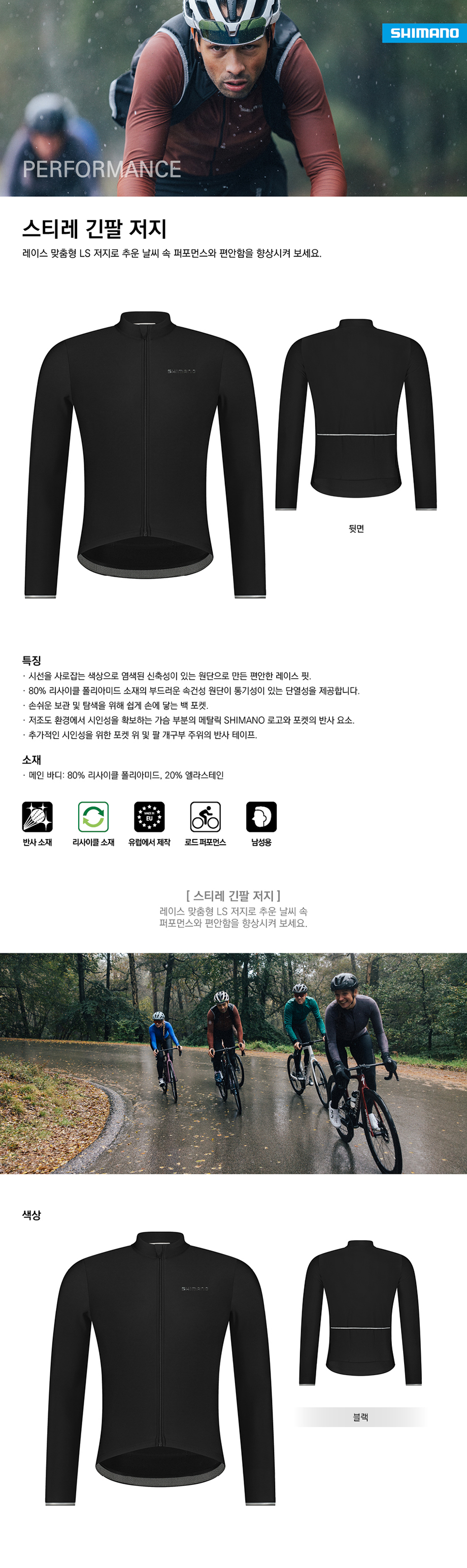시마노 스티레 긴팔 져지 가을겨울 자전거 져지 (나눅스수입)