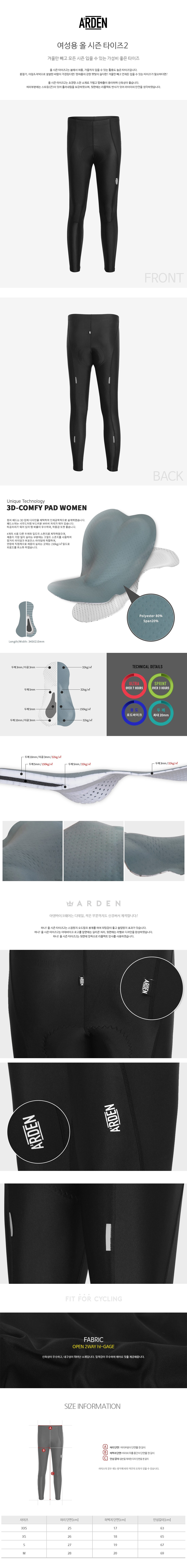 ARDEN 아덴 여성용 올 시즌 타이즈2 3D Comfy Pad