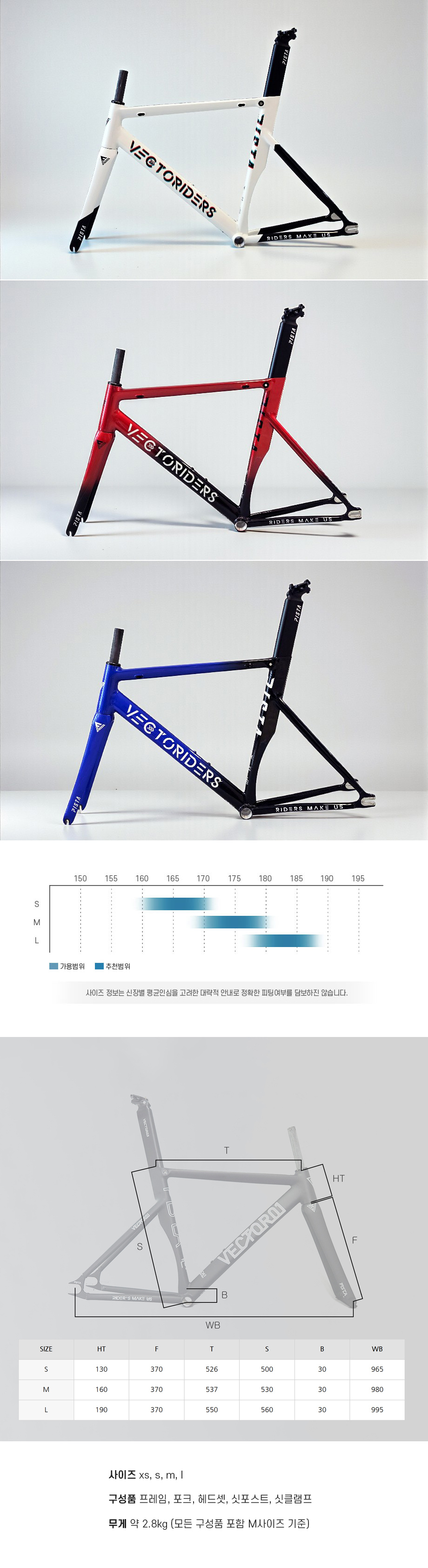 화이트노이즈, 부스트블루, 딥레드 3가지 컬러로 준비되었으며 XS, S, M, L 4가지 사이즈로 라이더의 신장조건에 맞추어 선택가능합니다.
