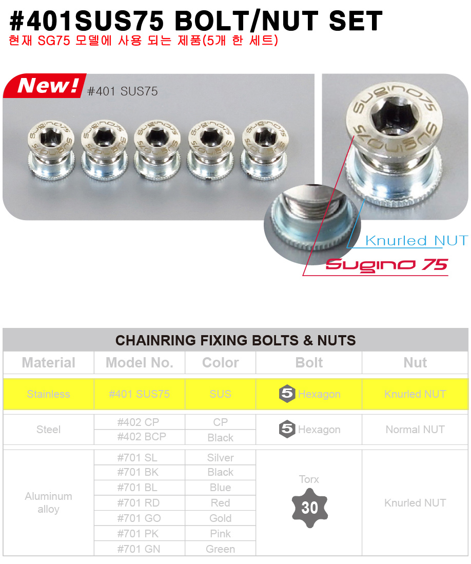 스기노 401SUS75 트랙 체인링 볼트/너트