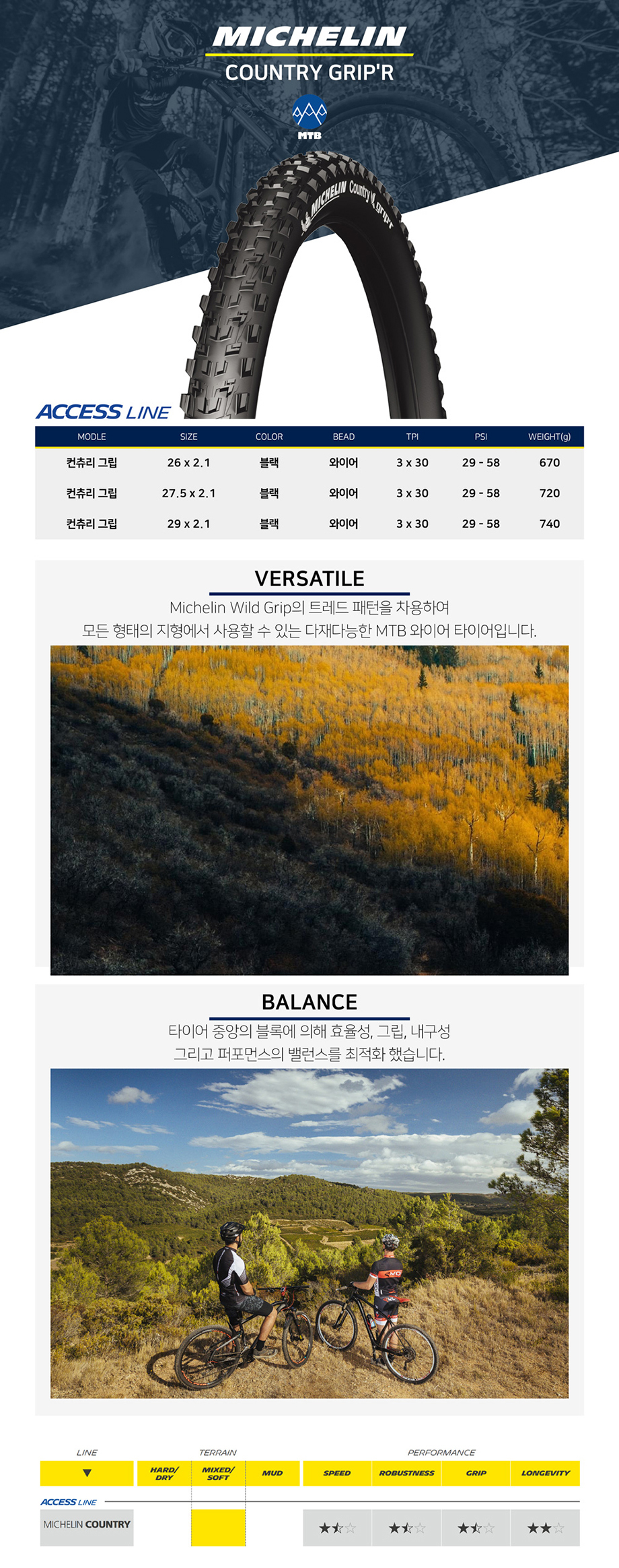 미쉐린 컨츄리 그립 27.5x2.1 와이어 MTB 타이어