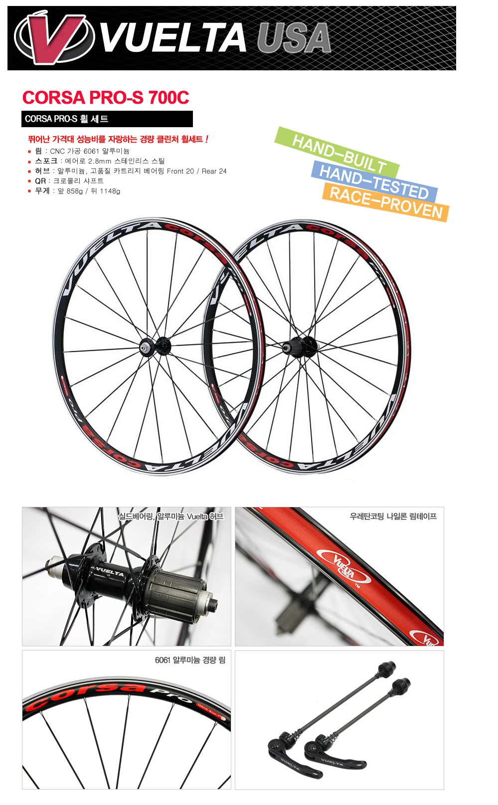 브엘타 Corsa PRO 700C 클린처 휠셋