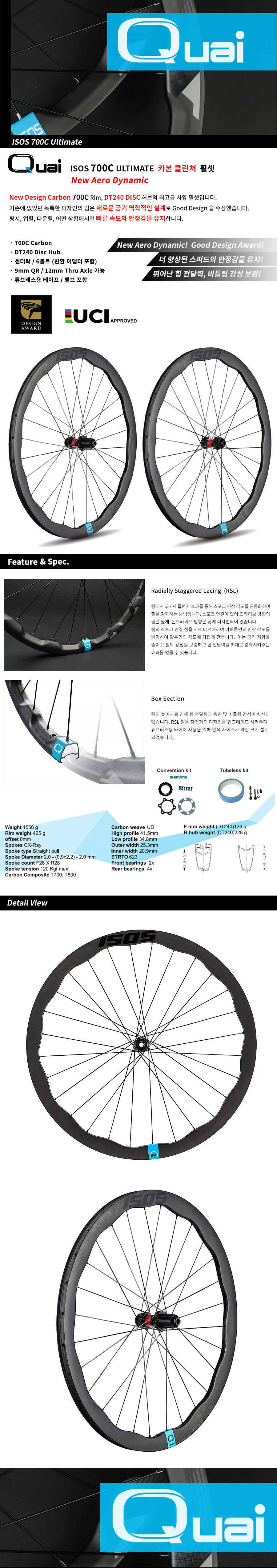 QUAI ISOS 700C DT240 공기저항 풀 카본 디스크 로드 휠셋