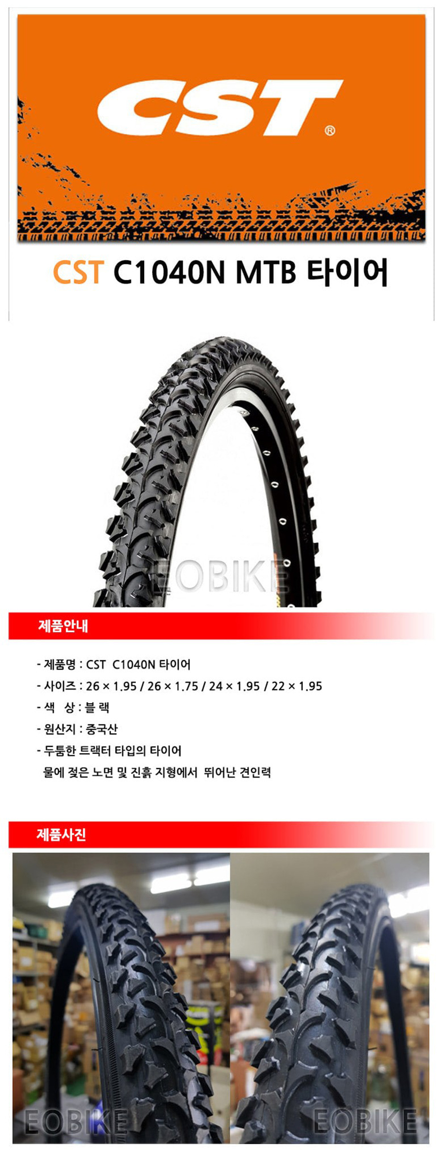 CST C1040N 22 - 24 - 26 x 1.95 인치 MTB 타이어