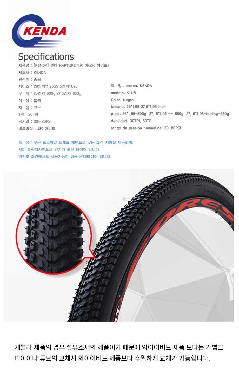 켄다 K1118 26/27.5x1.95 (와이어비드,케블라비드)
