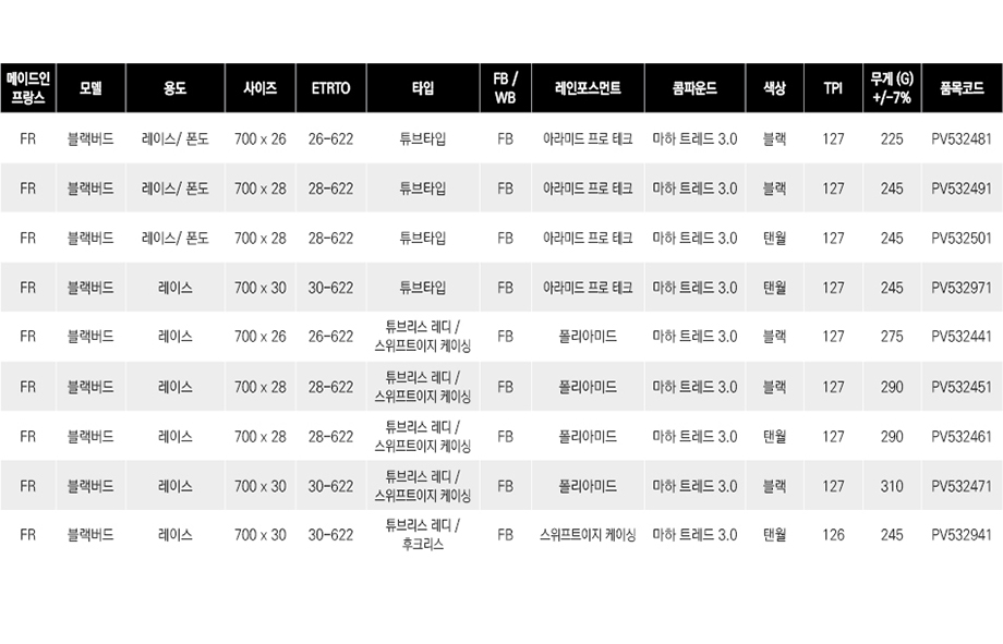 허친슨 블랙버드 TLR 로드 타이어