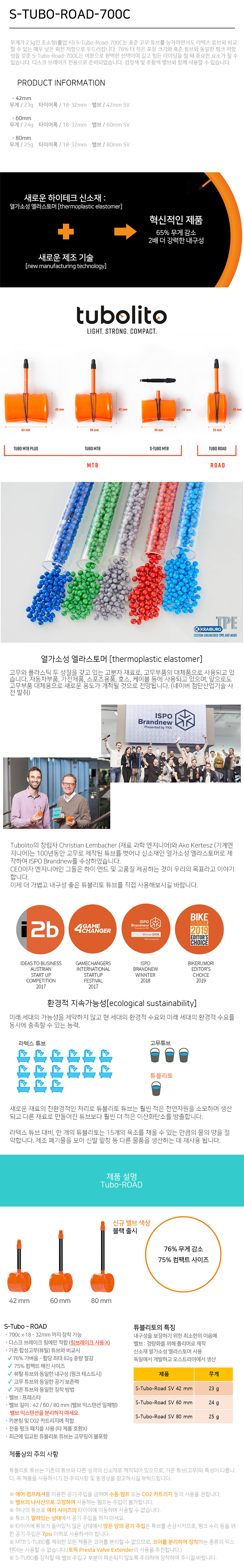튜블리토 S-TUBO 초경량 700C 로드 디스크용 자전거 튜브