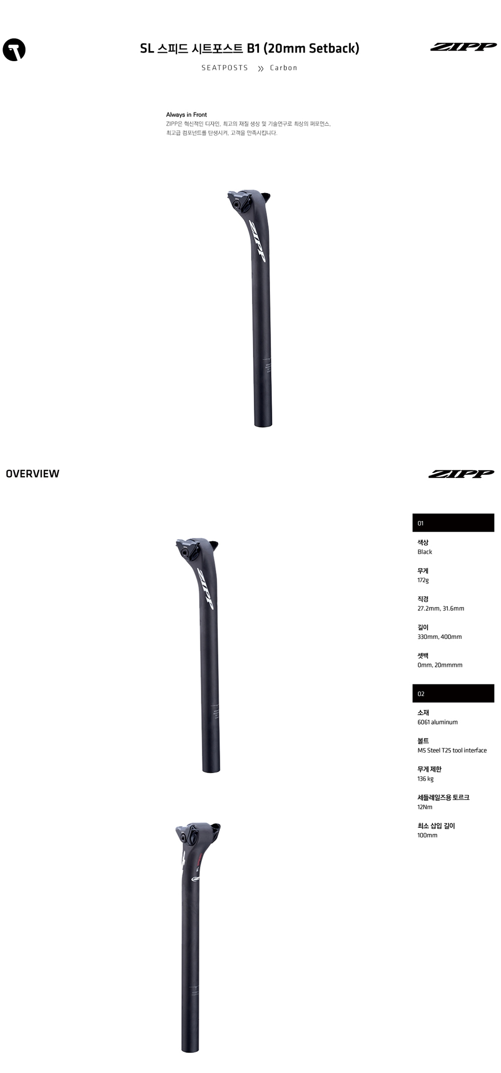 ZIPP SL 스피드 싯포스트 B1 (20mm Setback)