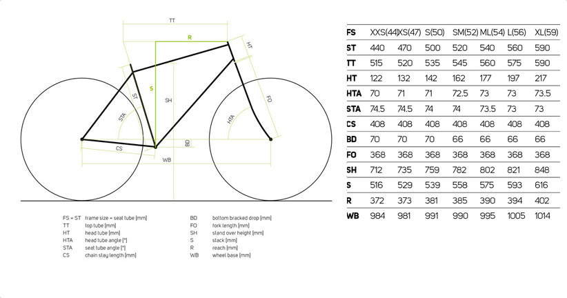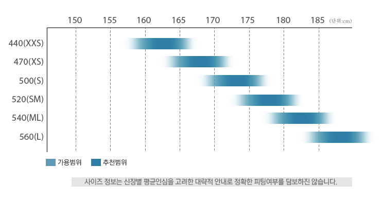 프레임사이즈는 470~560까지 다양하게 준비되어 라이더에 신체조건에 맞춘 쾌적한 피팅이 가능합니다.