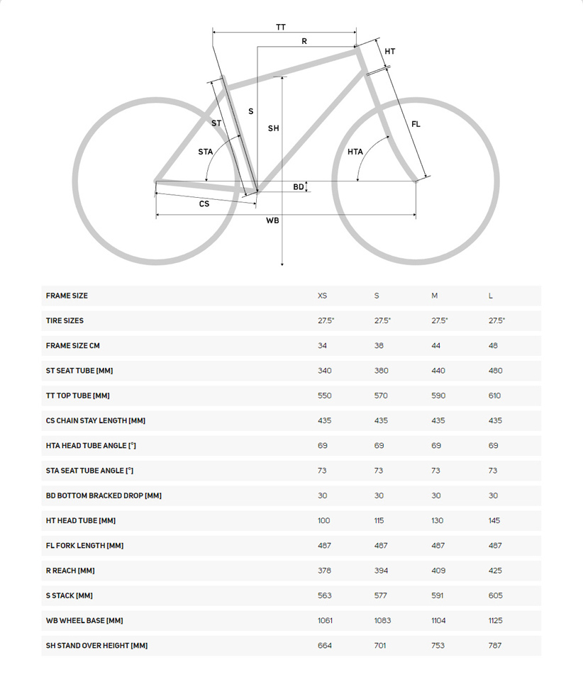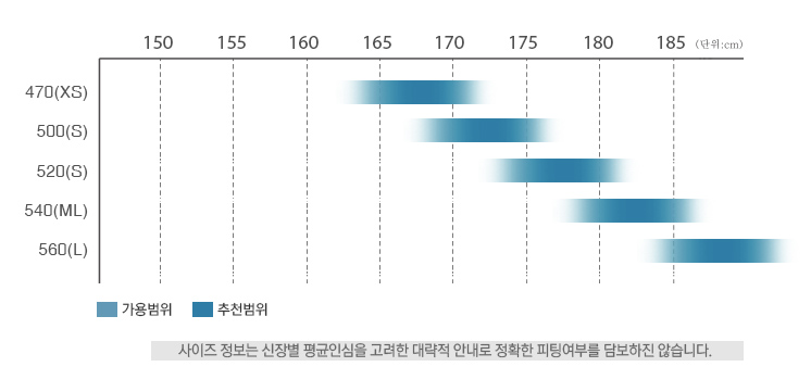 프레임사이즈는 470~560까지 다양하게 준비되어 라이더에 신체조건에 맞춘 쾌적한 피팅이 가능합니다.