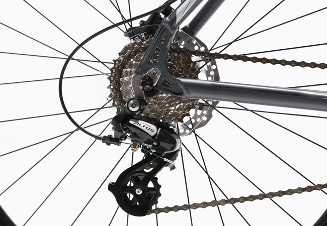 변속시스템은 '시마노 알투스'가 적용되어 충분한 기어비를 바탕으로 효율적인 주행이 가능합니다.