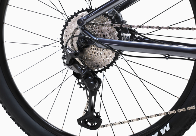 무려 12장에 달하는 스프라켓은 무려 10-45T에 달하는 광폭의 기어배율을 지원하며 36/26T의 크랭크와 함께 우수한 주행성능을 발휘합니다.