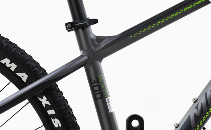 TFS 공법으로 깔끔하고 매끈하게 성형된 더블버티드 빅세븐 6061 알로이 프레임은 가볍고 강성이 뛰어납니다.