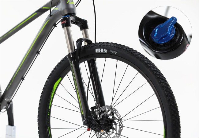 에어서스펜션 시스템은 라이더의 주행성향이나 체중에 맞춘 리바운드 강도조절이 가능하며 로크 상단에 위치한 락아웃 레버를 통해 간편하게 서스펜션의 리바운드 기능을 간편하게 On/Off 할 수 있습니다.