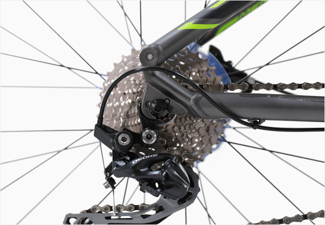 변속시스템은 '시마노 데오레'가 적용되어 폭넓은 기어비를 바탕으로 효율적인 주행이 가능합니다.