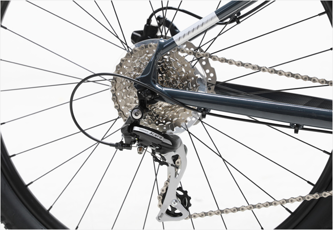 2x8단의 기어로 구성된 시마노 변속시스템은 다양한 환경에 안정감있는 시프팅 성능을 발휘하며 텍트로 유압디스크 브레이크는 더욱 견고한 제동성능을 제공합니다.