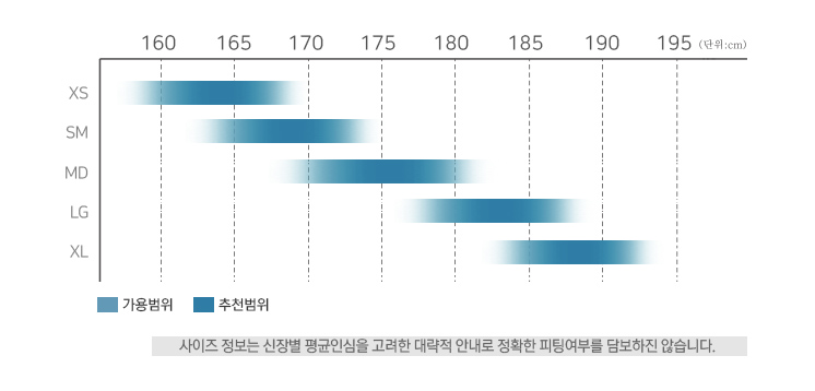 사이즈 XS, SM, MD, LG, XL