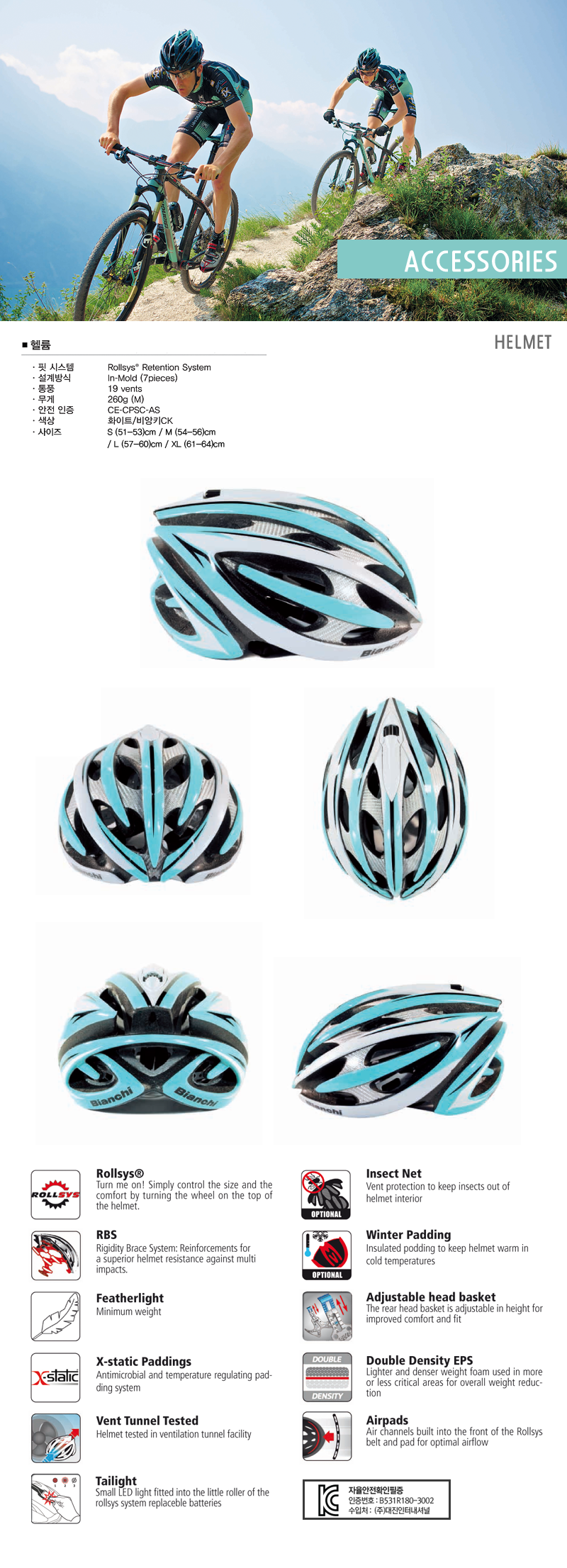 비앙키 헬륨 헬멧 (화이트&체레스타)