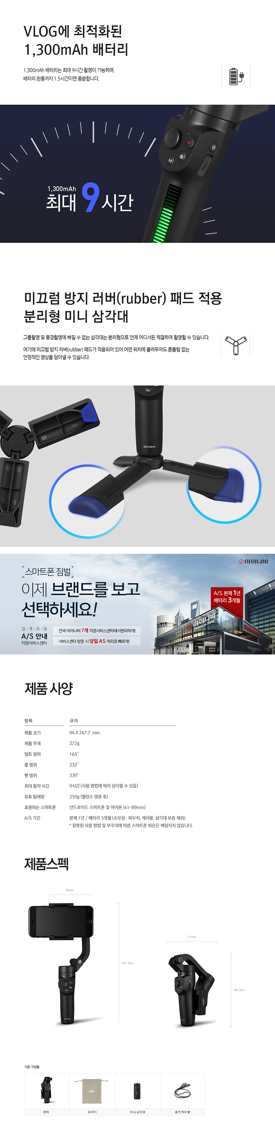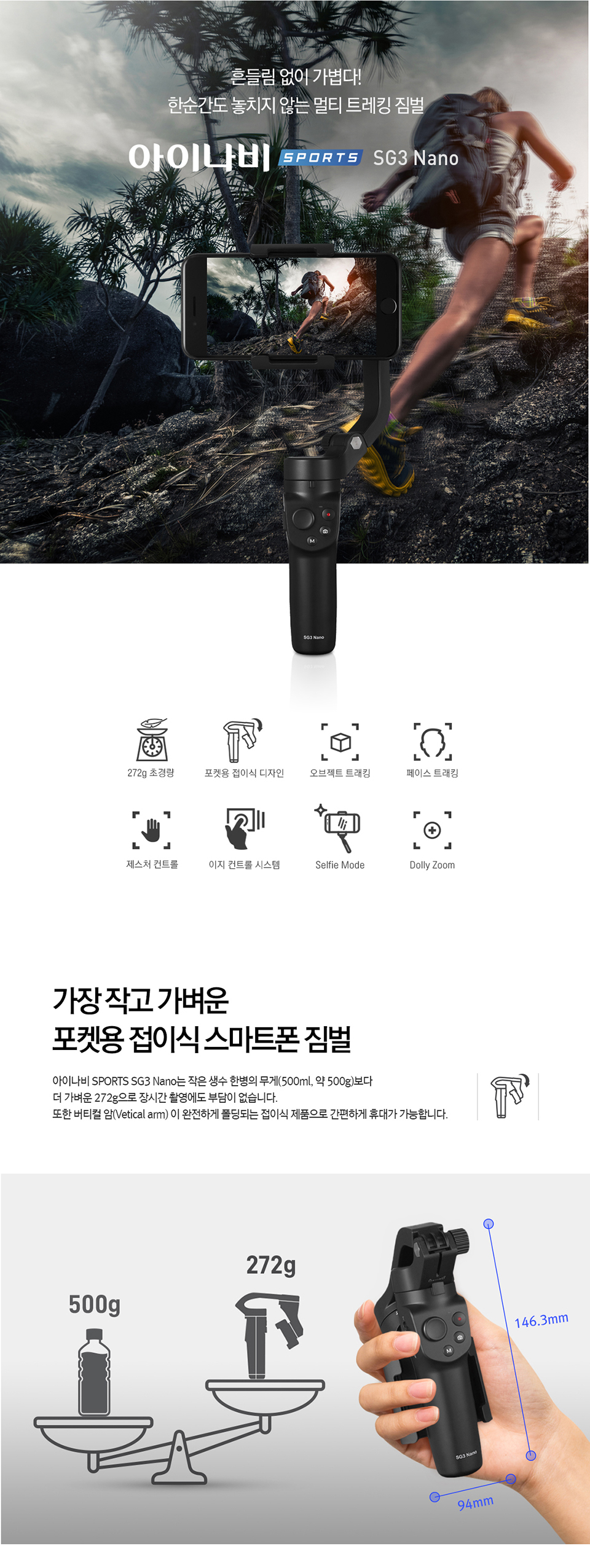 아이나비 접이식 스마트폰 짐벌 셀카봉 SG3 NANO