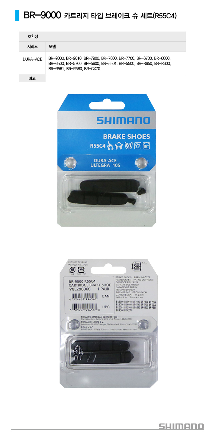 시마노 BR-9000 듀라에이스 림브레이크슈 R55C4 (나눅스수입)