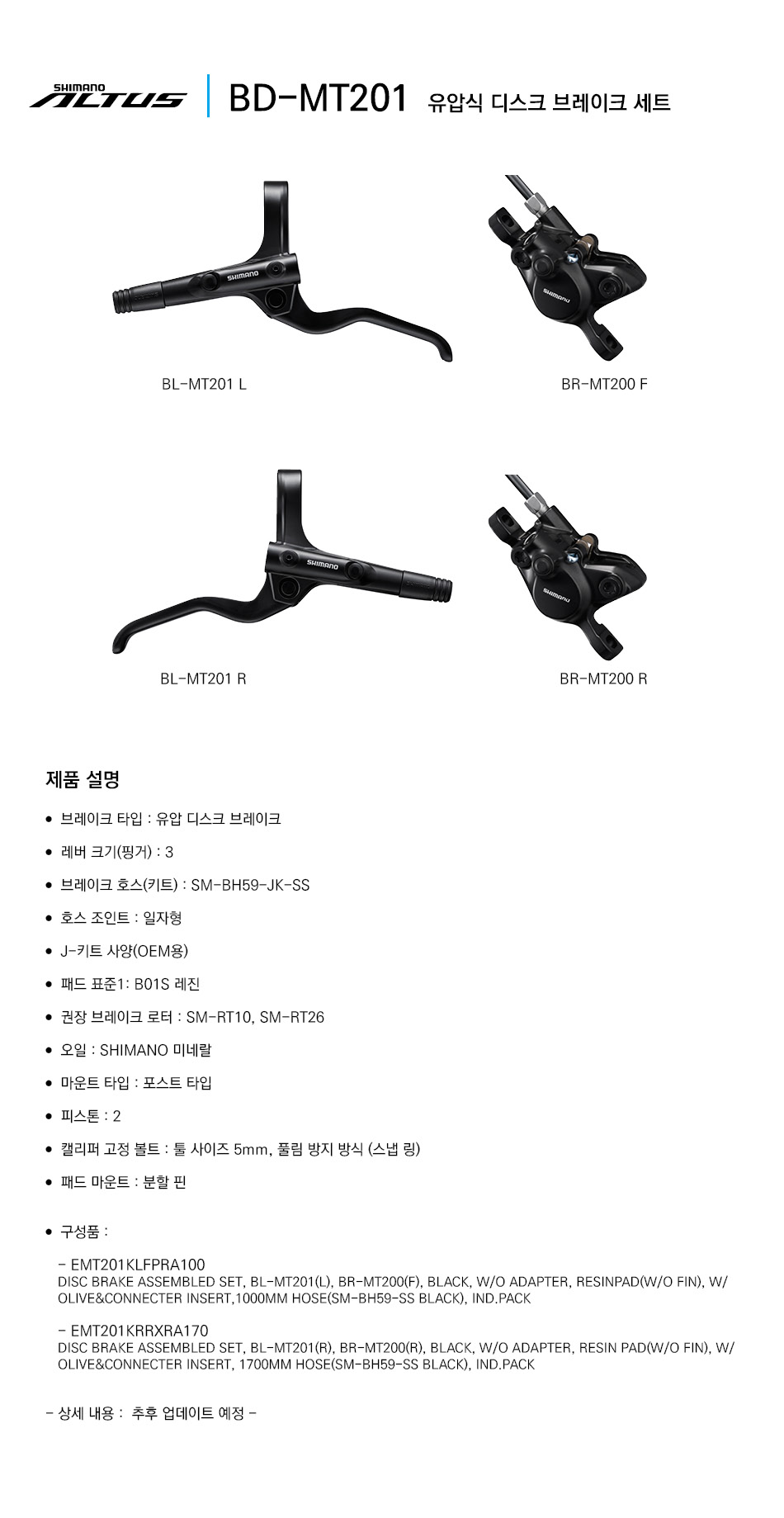시마노 BD-MT201 MT200 유압 디스크 브레이크 세트 (나눅스수입)