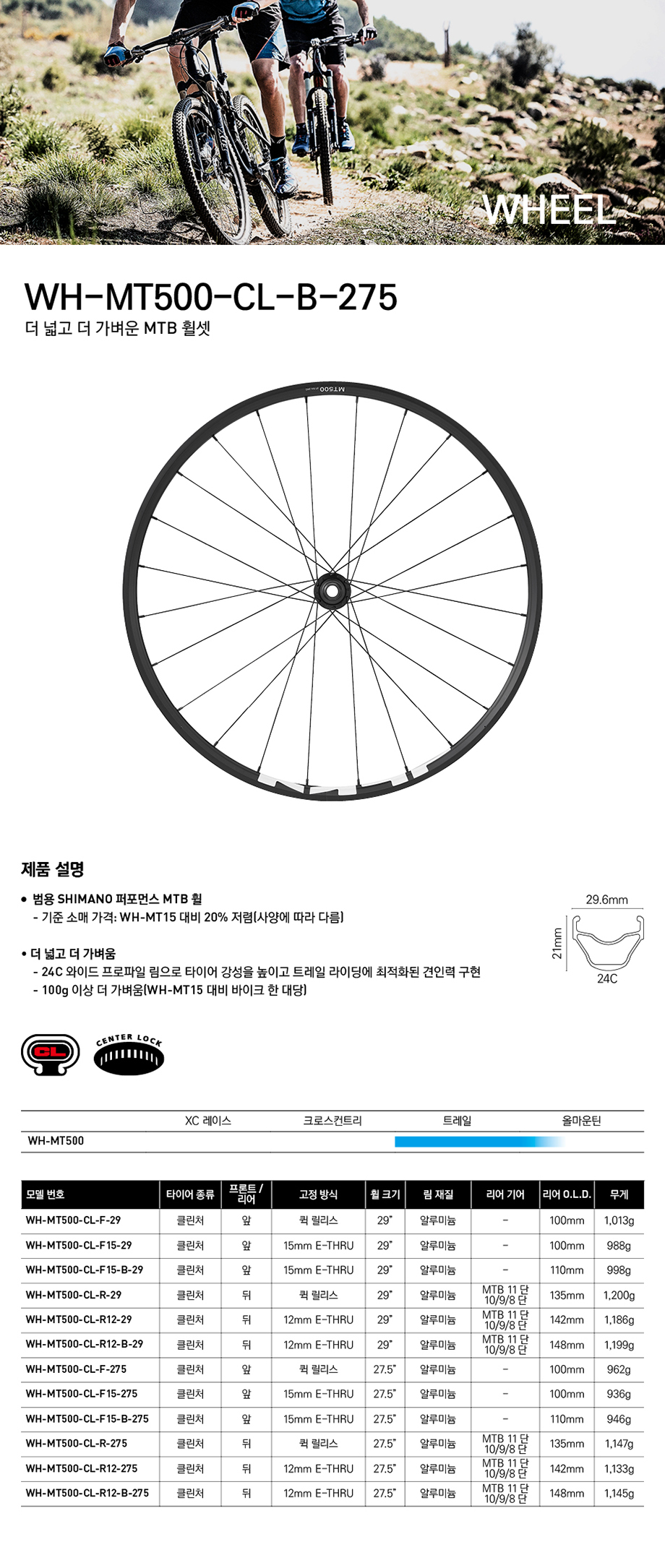 시마노 MT500 클린처 27.5인치 MTB 휠셋(E-쓰루,148mm리어허브) (나눅스수입)