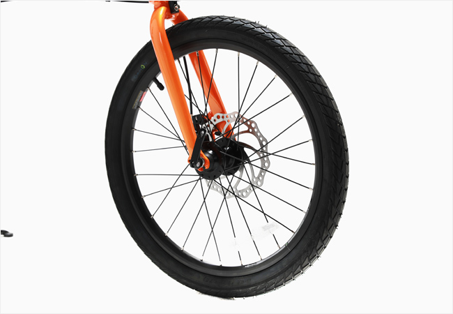 20인치의 미니벨로 휠셋은 자전거 낯선 초보라이더도 부담없이 자전거를 시작하기에 적합합니다.