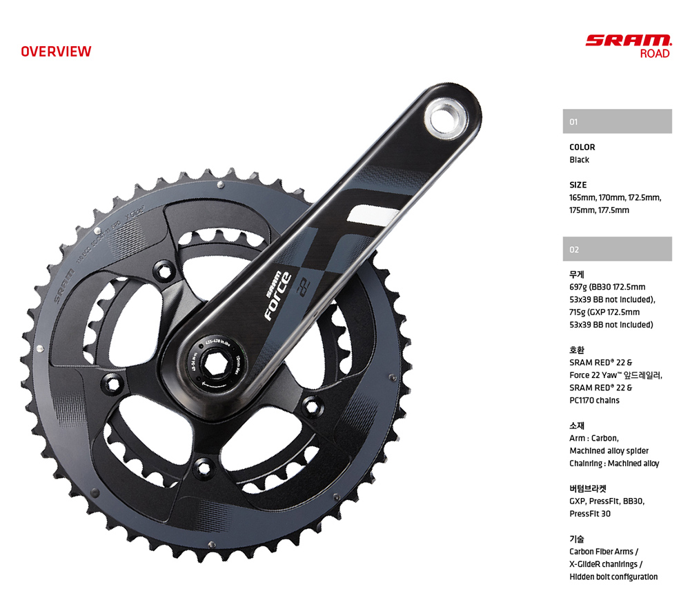 스램 ROAD FORCE22 포스22 크랭크 GXP.BB30