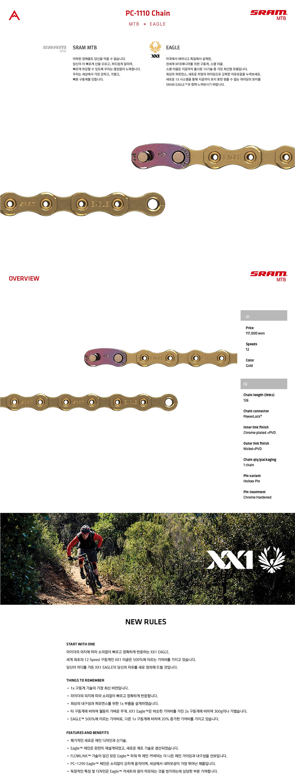 SRAM PC XX1 EAGLE 스램 이글 12단 체인 (126링크)