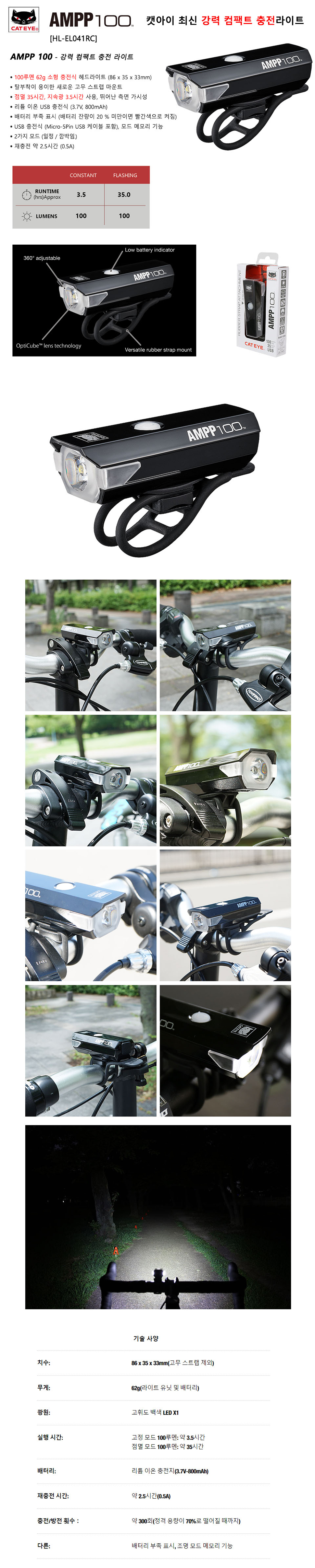 캣아이 AMPP100 + LD160 전조등 후미등 세트