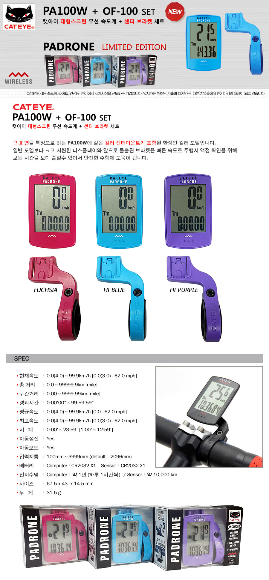 캣아이 PA-100W 무선속도계 + 센터브라켓 한정판