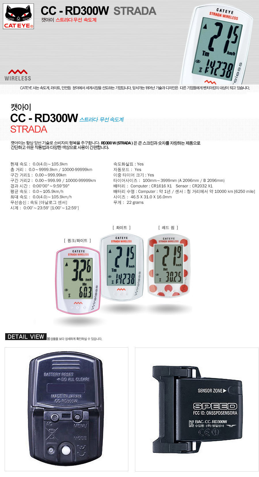캣아이 스트라다 CC-RD300W 와이드스크린 무선속도계
