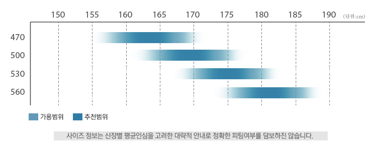 프레임사이즈는 최근 낮아진 픽시연령층의 니즈에 발맞추어 470(XS)사이즈 부터 560(L)사이즈까지 총 4가지로 준비되어 라이더의 신체조건에 맞춘 쾌적한 피팅이 가능합니다.