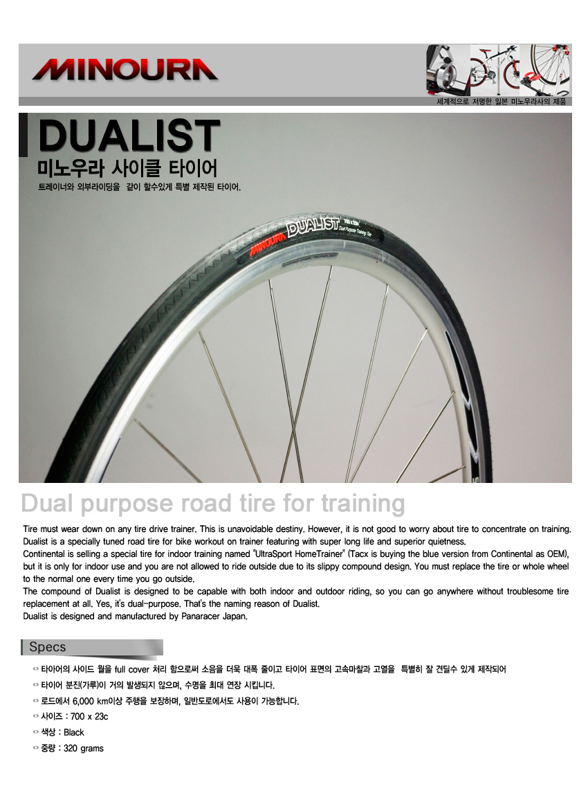 미노우라 듀얼리스트 사이클 타이어 700Cx23 롤러용