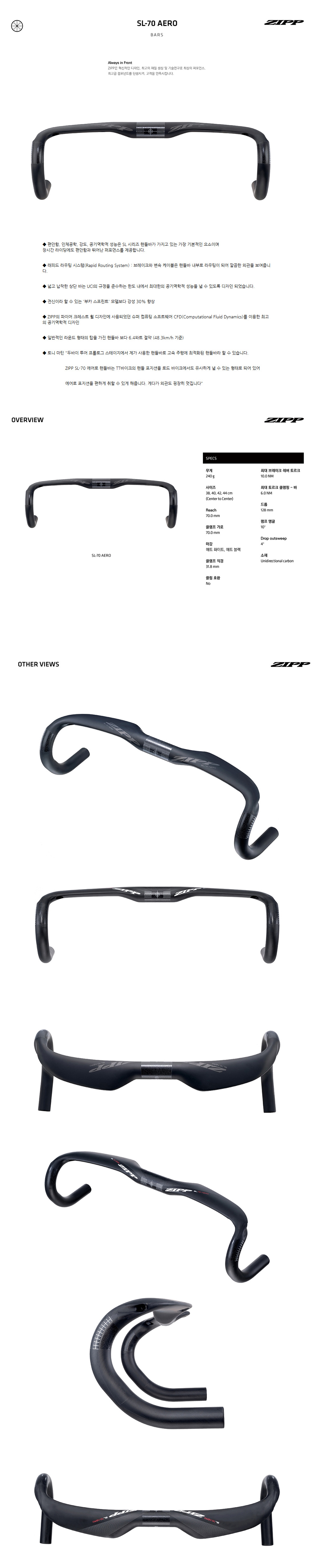 ZIPP SL-70 AERO 카본 오버사이즈 드롭바 (무광)
